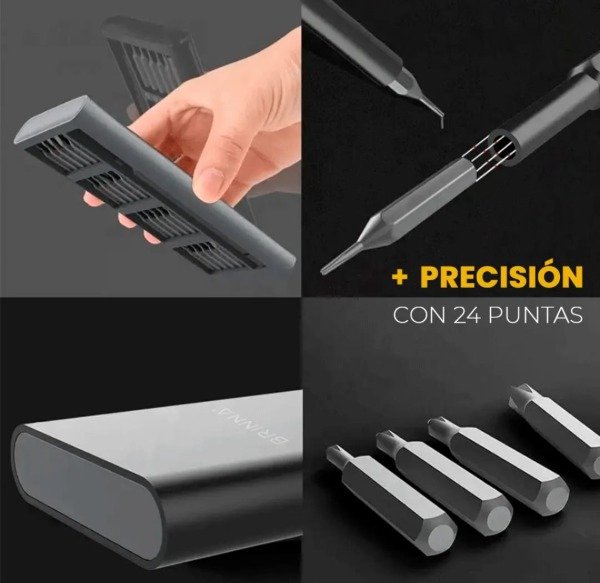 Las puntas imantadas aseguran un agarre perfecto del tornillo, evitando caídas o pérdidas durante la reparación, lo que lo convierte en la elección ideal para profesionales y aficionados.