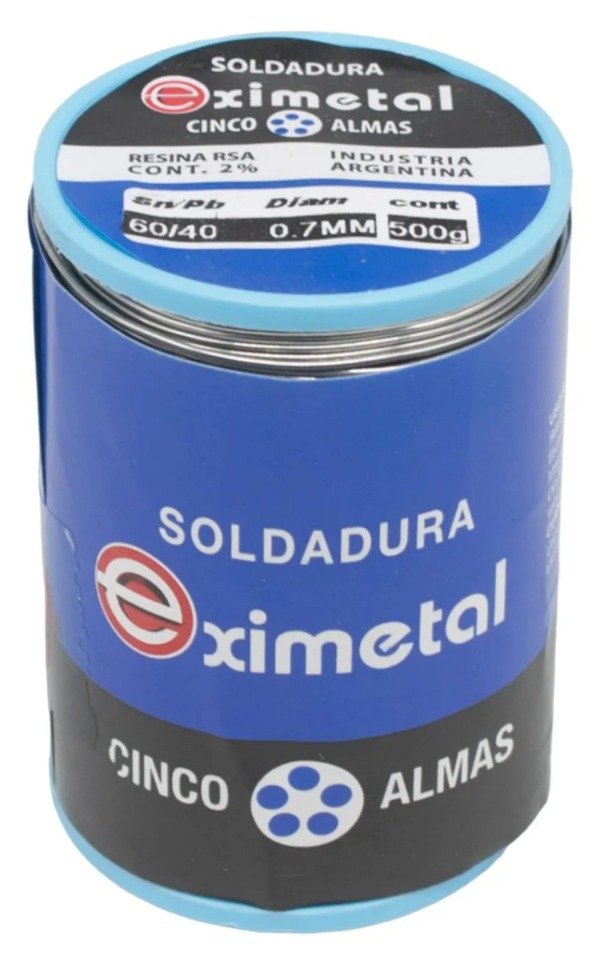 El rollo de soldadura Eximetal 60/40 de 0,7 mm por 500 gramos es la elección ideal para quienes buscan precisión, rendimiento y confiabilidad en cada unión. Fabricado con una aleación de 60% estaño y 40% plomo, garantiza un punto de fusión bajo, excelente conductividad y terminaciones limpias, lo que lo convierte en un insumo esencial tanto para profesionales como para aficionados de la electrónica.